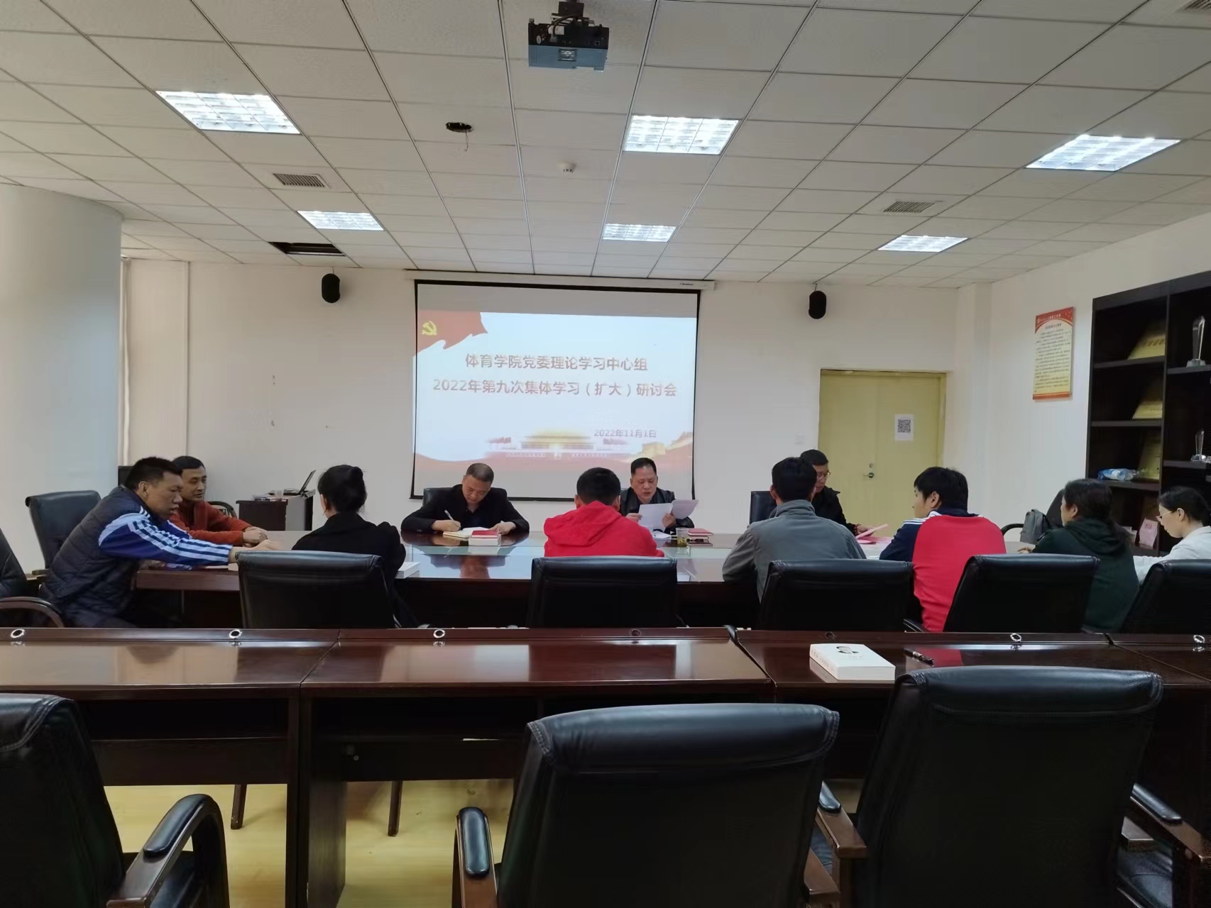 会议室召开2022年度第九次集体学习(扩大)研讨会。部门党政班子、各科室和系(部、中心)负责人、各党支部书记参加会议。院党委书记李国和主持会议。