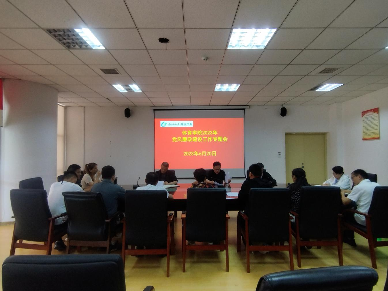 6月20日,我院2023年上半年党风廉政工作会议在nba直播 会议室召开。nba直播 党委书记李国和、院长余兵、党委副书记、纪委书记(兼)吕骥、党委委员高国贤、向宇宏出席会议,院中心组成员参加会议。会议由党委书记李国和主持。