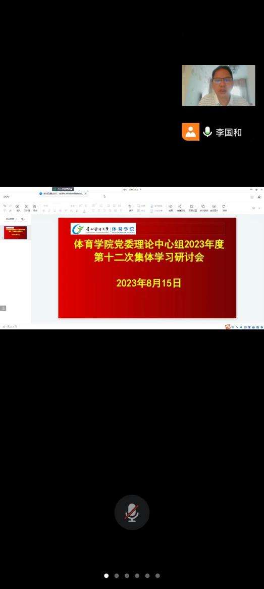 8月15日,学习贯彻习近平新时代中国特色社会主义思想主题教育暨院党委理论学习中心组2023年度第十二次集中学习(扩大)研讨会通过腾讯视频会议召开,以“深入学习习近平总书记在文化传承发展座谈会上的重要讲话精神,在推动文化传承发展中作出高校应有贡献”为主题,开展了专题学习研讨。院党委书记李国和主持并讲话,院长余兵列席会议,院党委副书记、纪委书记(兼)吕骥,院党委委员、副院长龚卫华,院党委委员高国贤、向宇宏出席会议,各科室、系部(中心)负责人、支部书记参加会议。