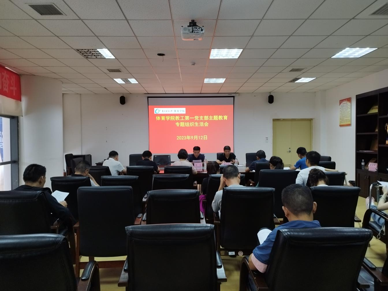 会议室召开学习贯彻习近平新时代中国特色社会主义思想主题教育专题组织生活会,学校主题教育督导组组长陈弘出席指导会议,教工第一党支部全体党员参加会议,会议由支部书记龚卫华主持。