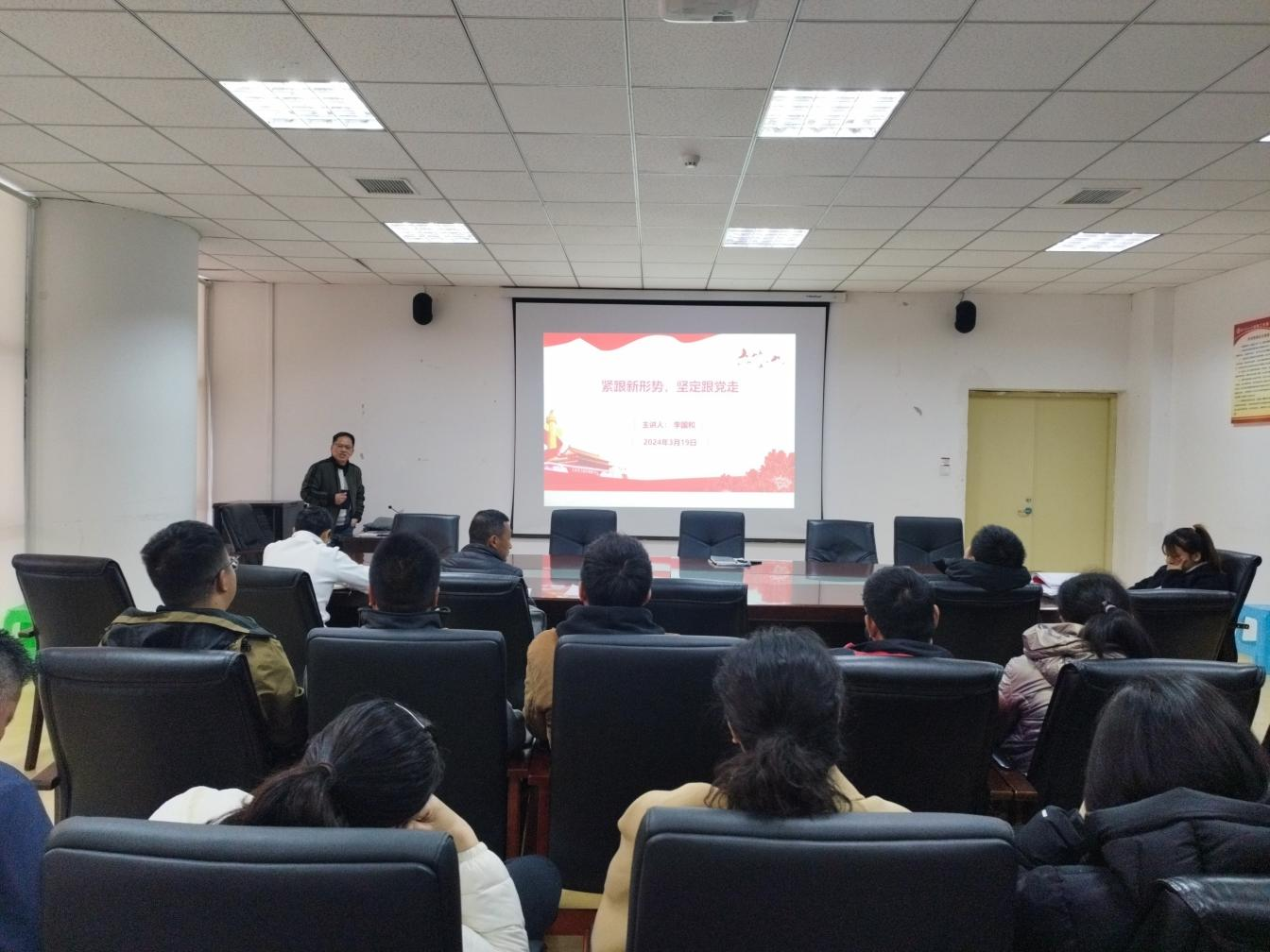 党委书记李国和同志为全体党员上了一堂题目为《紧跟新形势,坚定跟党走》的党课。