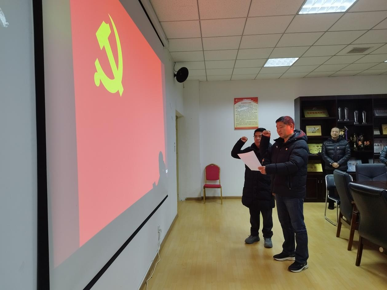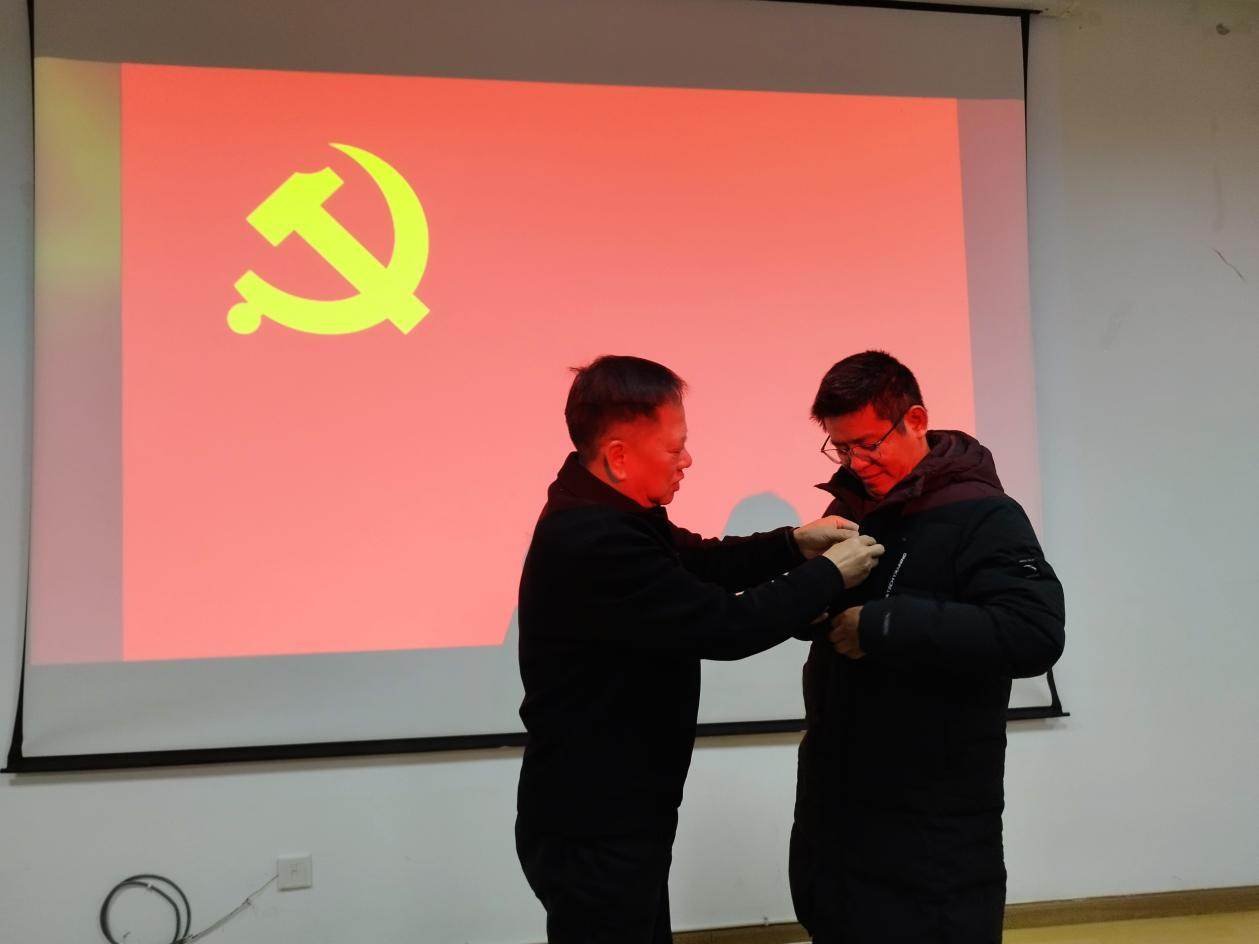 吕骥宣读了《关于同意接收任华同志为中共预备党员的批复》,李国和为新党员佩戴党员徽章。在支部书记龚卫华带领下,新党员任华面向党旗,紧握右拳,庄严宣誓。