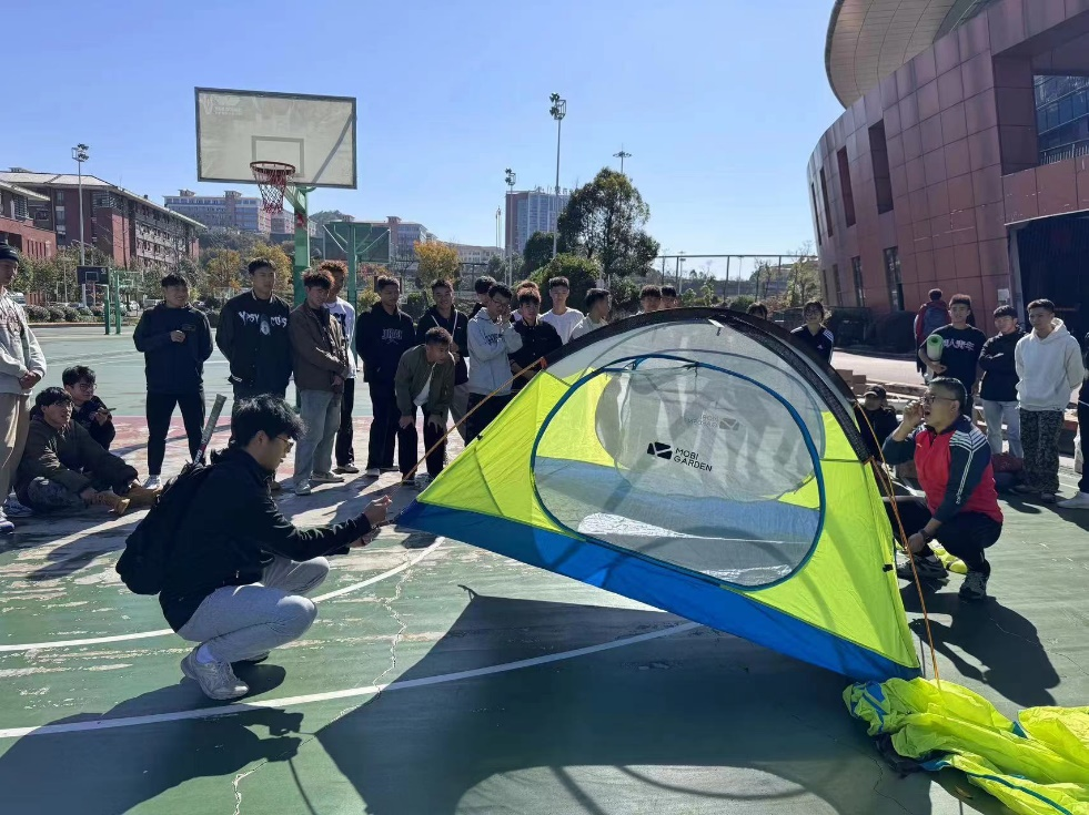 学生每隔两周都会选择天气晴朗、利于清洁、养护户外露营装备的时间进行该项劳动教育实践。在具体实践过程中,学生们首先认真学习了户外露营活动的主要装备组成,包括帐篷、睡袋、防潮垫等,继而学习并动手实践了露营装备的搭建及收纳方法,最后按照露营装备的养护要求对其进行物表污渍清洁、通风晾晒等工作。