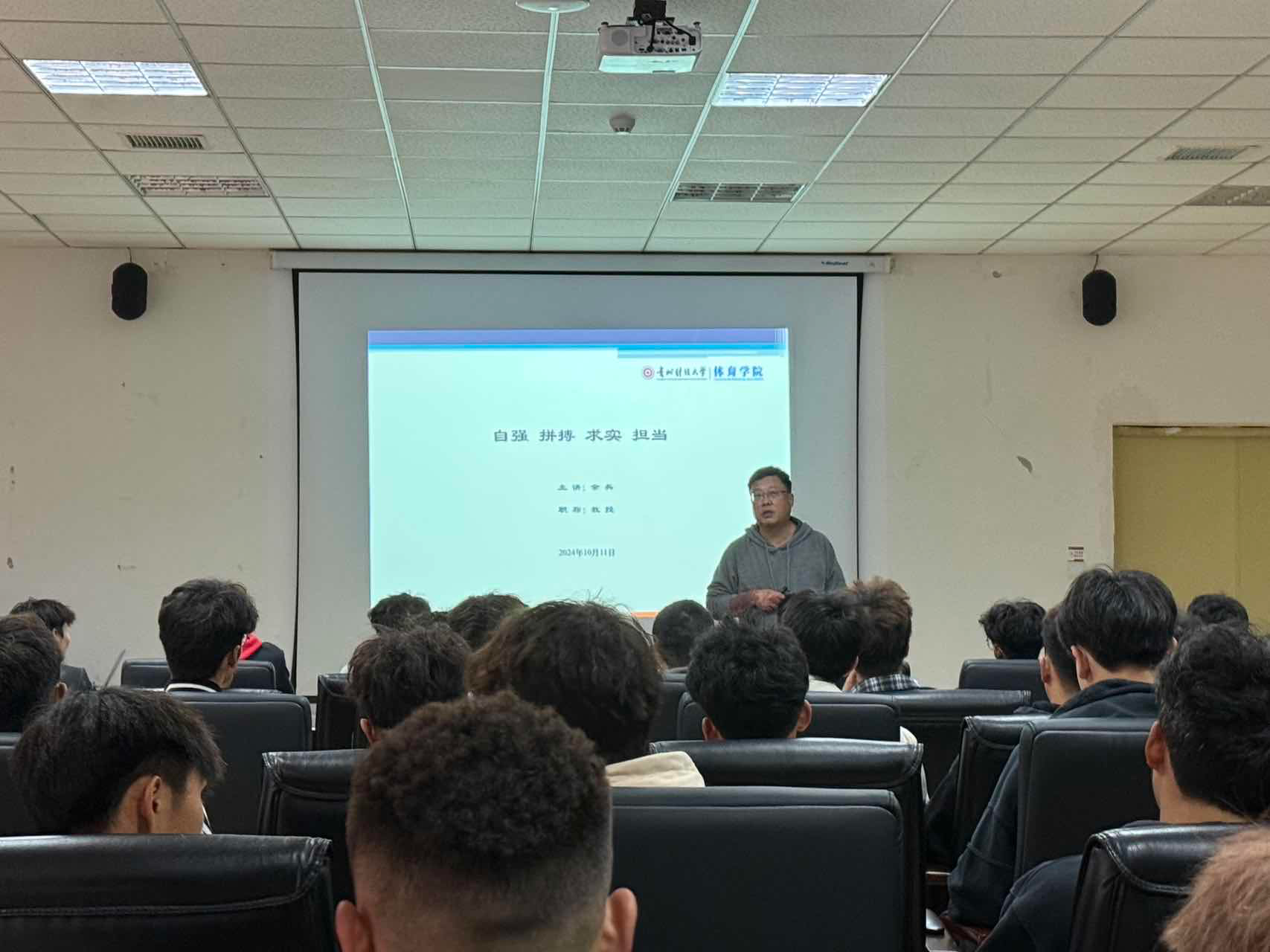 2024年10月11日中午nba直播 院长余兵为同学们讲述贵州财经大学校情校史院情院史,并且给同学们分析了学校和nba直播 的变化。