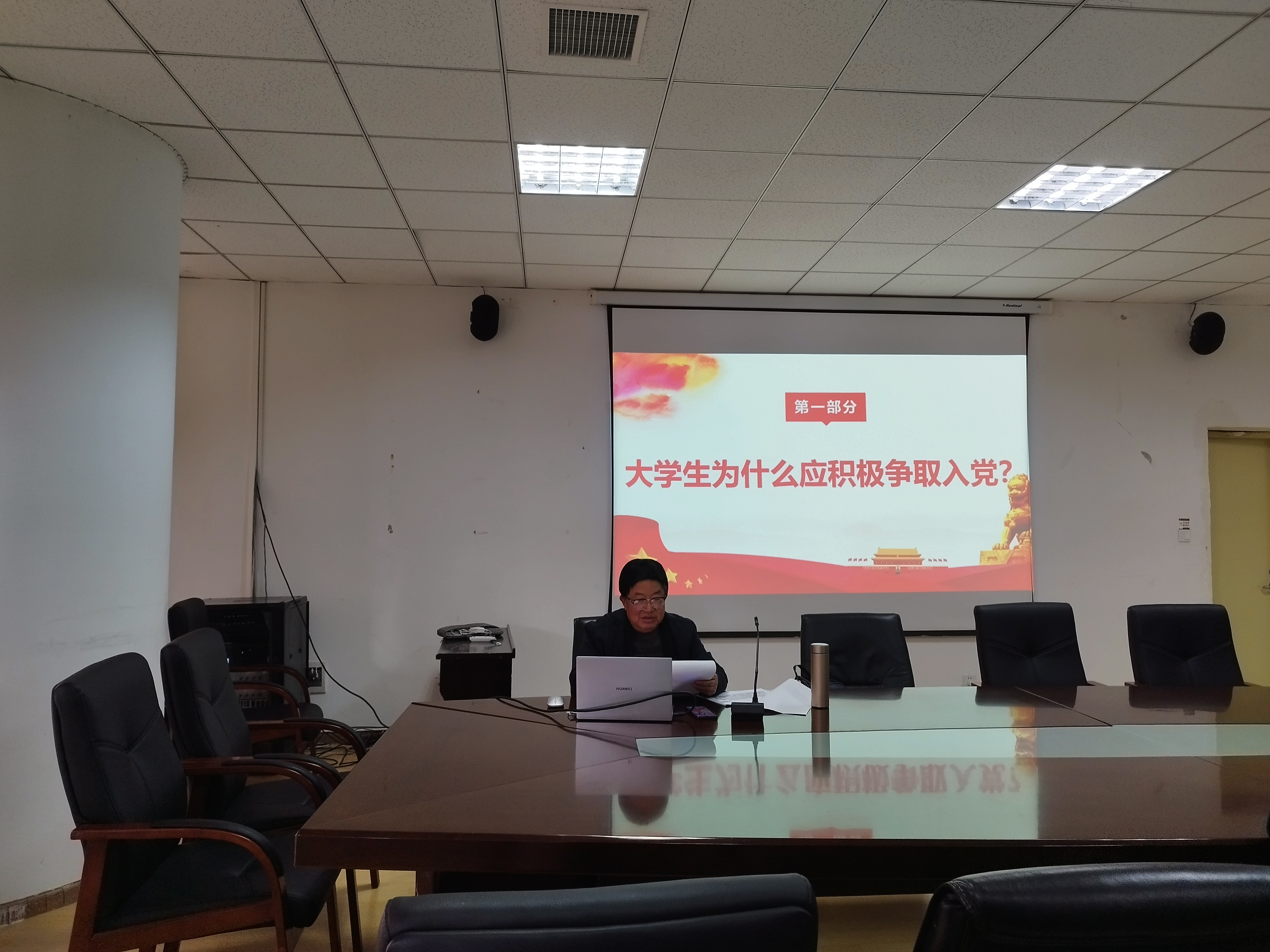 游本强以“树立坚定正确的政治方向,争取早日成为一名合格的中国共产党党员”为题,首先讲述了“大学生为什么应积极争取入党”。他认为,一百多年来长期革命斗争和社会主义建设的历史证明中国共产党是伟大、光荣、正确的党,是中国特色社会主义事业的领导核心。广大青年是党和国家事业发展的生力军,是中国特色社会主义事业的接班人,新征程上广大青年重任在肩、大有可为,积极向党组织靠拢是当代青年的正确选择。接着,他讨论了“大学生如何创造条件,争取早日加入中国共产党”的问题。他指出,大学生要认真学习、领会、宣传、贯彻、执行党的各项方针政策,努力学好科学文化知识,积极参加各种正能量活动,高标准严格要求自己。