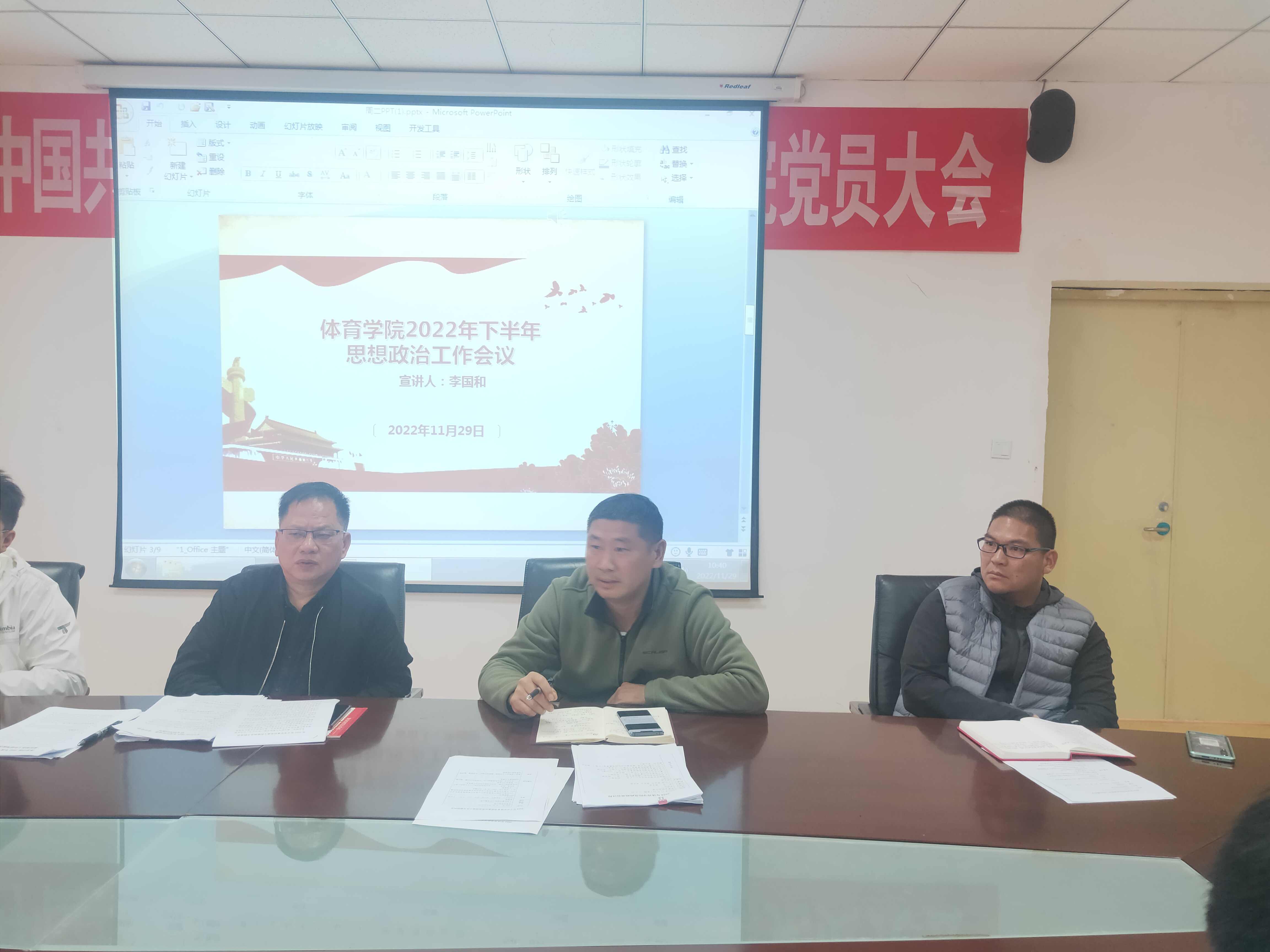 党政班子、各科室科级干部、各系(部、中心)负责人及各党支部书记参会。本次会议由直属党支部书记李国和主持。