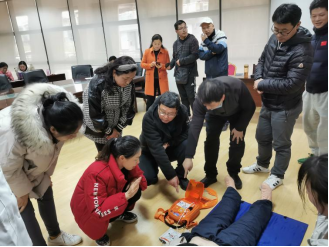 首先,余兵主任代表体工部对贵州省职工医院的专家的到来表示欢迎并致辞,紧接着陈芳医生结合理论知识和实际救护技巧,对遇到突发状况时如何判断、徒手心肺复苏、使用急救设备等紧急救护措施做了详细的讲解。为了使老师们更深入地了解和掌握心肺复苏要领,专家们在现场展开了实操急救演练,手把手向老师们传授了急救手法和注意事项。最后专家和老师们深入互动,解答了很多日常工作和生活中的医疗急救常识。