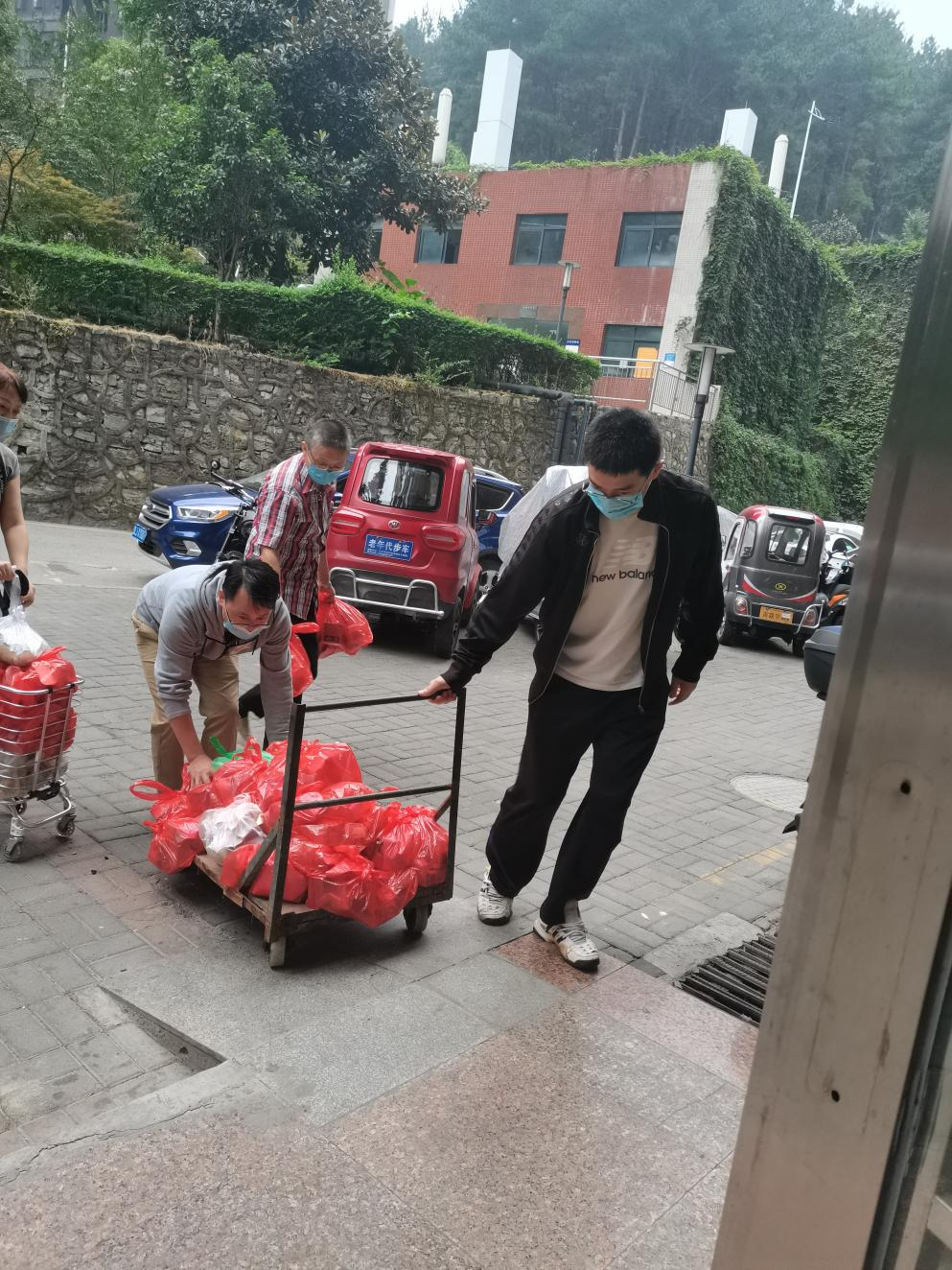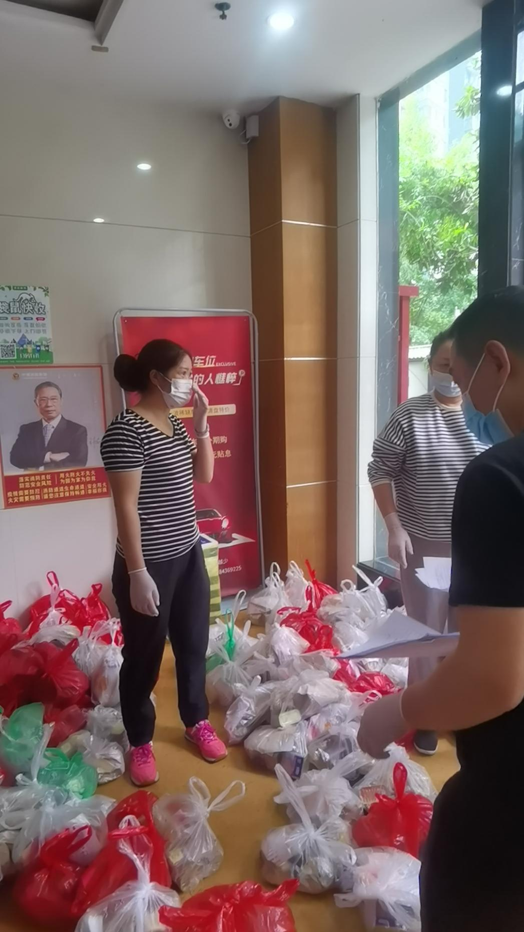 枫林小区党员志愿队积极行动,运送物资、分拣物资、发放物资,为保障居民的正常生活做好服务工作。