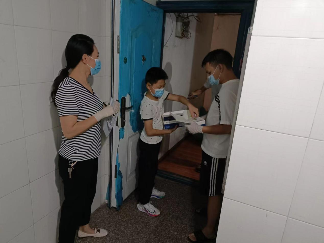 9月10日,龚卫华、周晓梅、吴春雨,赵东明和勇敢的“体育小志愿者”们给枫林小区5栋住户逐一发放核酸抗原试剂,并做好数据登记和整理工作,力保抗疫工作顺利进行。