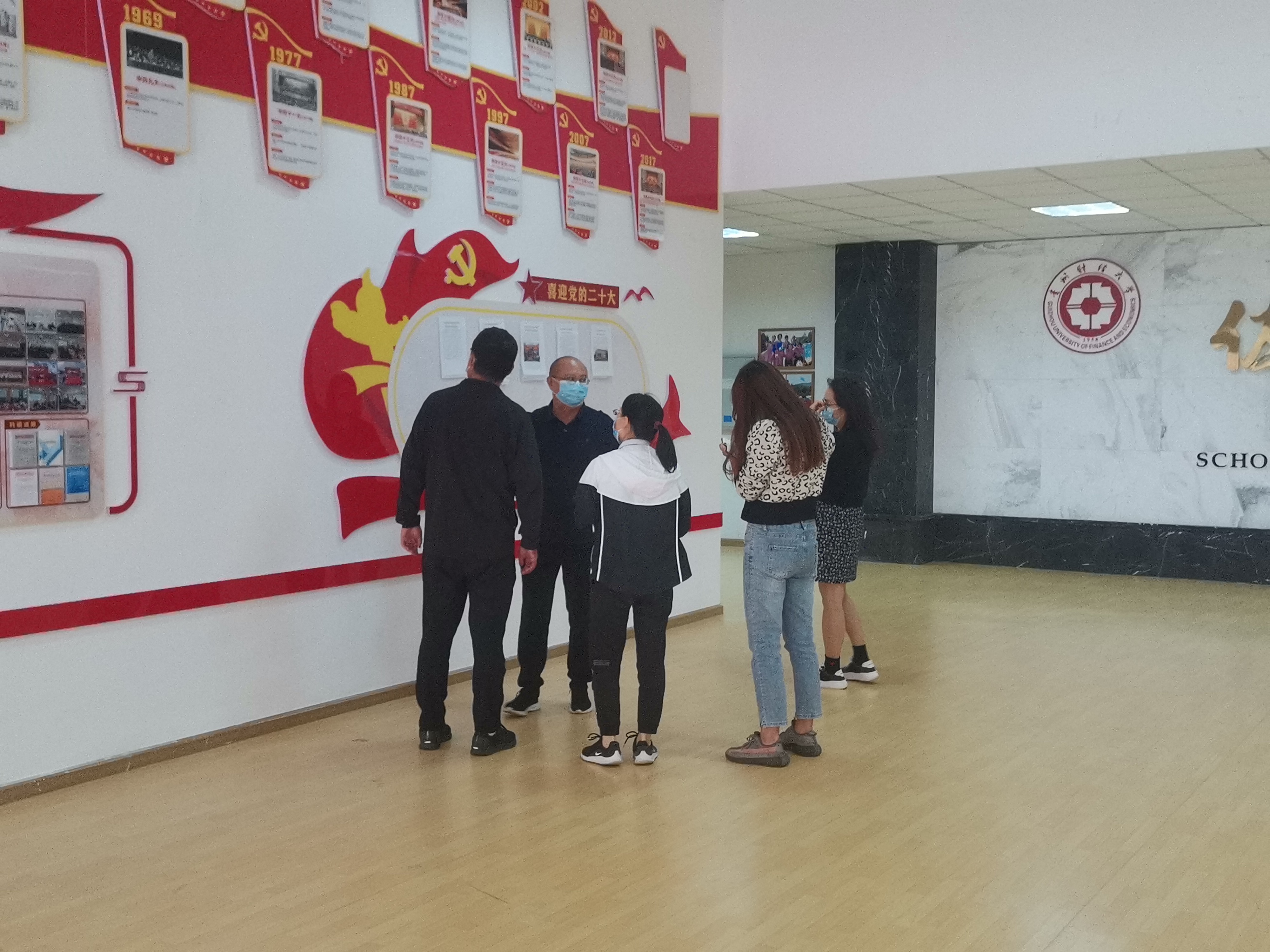 墙面宣传内容主要分为党建宣传、行政事务宣传和竞赛成绩宣传。周晶一行对展示内容进行了全面检查,对nba直播