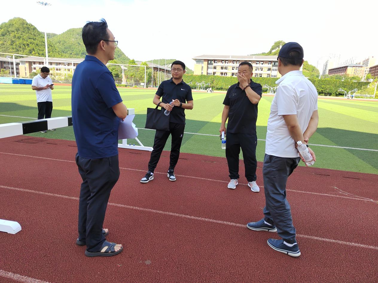 7月12日下午,为保障2023年贵州省大中学生田径锦标赛顺利举行,省教育厅体卫艺处一级调研员严卫率领省学生体育协会以及本次比赛裁判长一行到我院检查相关筹备工作,我院院长余兵、副书记吕骥、副院长龚卫华及场馆管理中心负责人王玉清陪同检查。