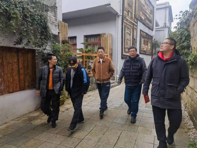 一行抵达牛蹄关村后,首先查看了阿歪寨旅游乡村示范点及藤甲谷等艺术示范项目,全面了解了省级乡村示范村的建设情况,并对后期建设提出了意见建议。接下来,深入牛蹄关村村落集群,切实考察体育助力乡村发展的基础条件,并与村支两委进行座谈交流。座谈会上,余兵表示,牛蹄关村具备体育助力乡村振兴的基础条件,可围绕定向越野、体育非遗等项目创新业态,推动旅游产业化创新。