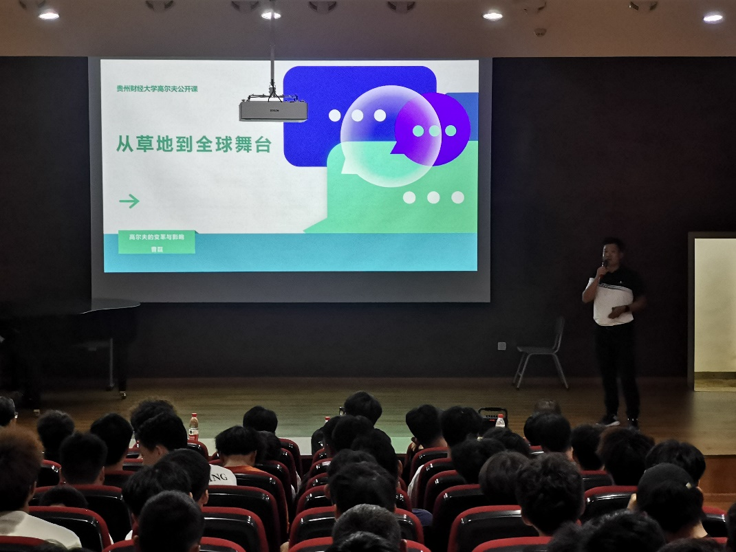 全体学生上了一堂题为“从草地到全球舞台-高尔夫的变革与影响”的高质量公开课。从高尔夫的起源与发展、高尔夫的变革与创新、高尔夫的全球影响、高尔夫的未来展望等四个方面娓娓道来,一方面让学生们了解了高尔夫运动的概况和基本知识,拉近了与高尔夫运动的距离;另一方面通过分享自身的从业经历,尤其是从一名普通的体育生迈入高尔夫资深教练的经历,激励了现场每一位学生;最后,曹磊为学生指明了未来在高尔夫运动员、教练员、裁判员、经纪人、体能训练师等不同赛道上的发展路径和前进方向,并殷切表达了与nba直播(中国)唯一官方网站