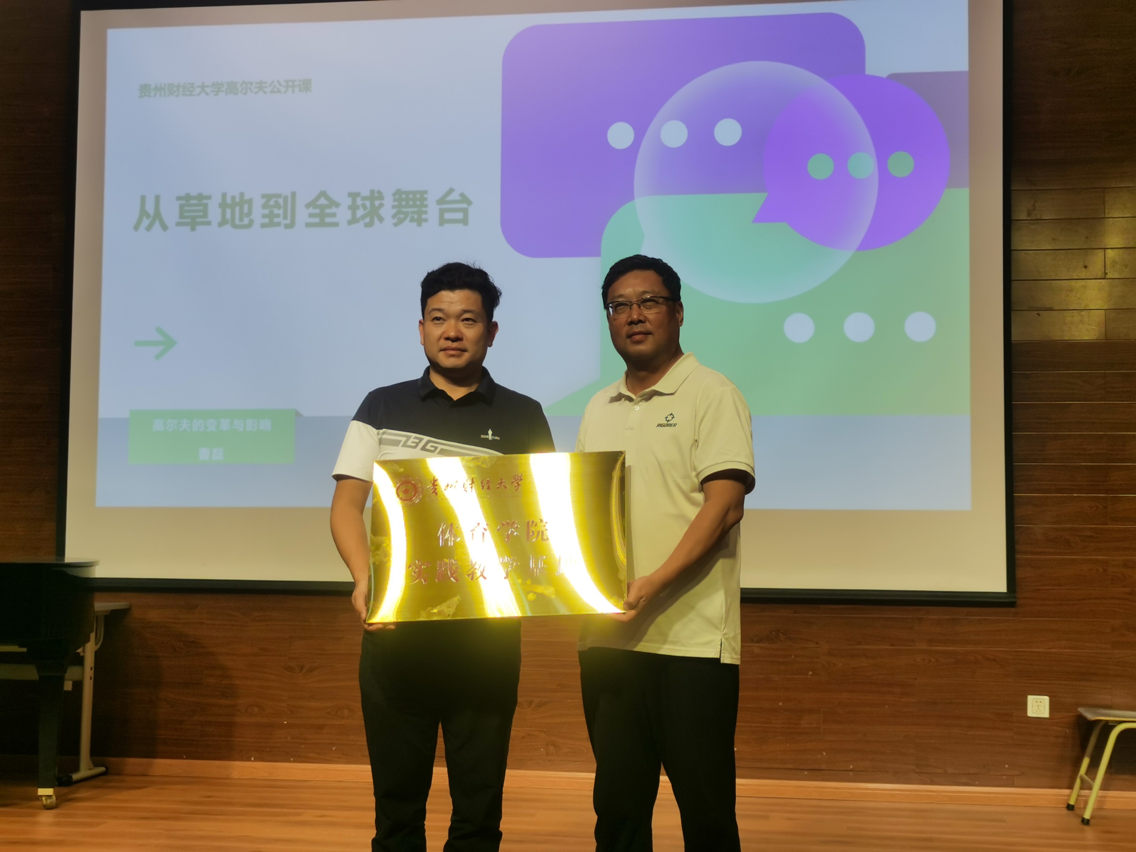 院长余兵与贵阳松树谷高尔夫俱乐部创始人曹磊代表双方在实践教学、合作交流等方面达成合作协议,并举行了授牌仪式。