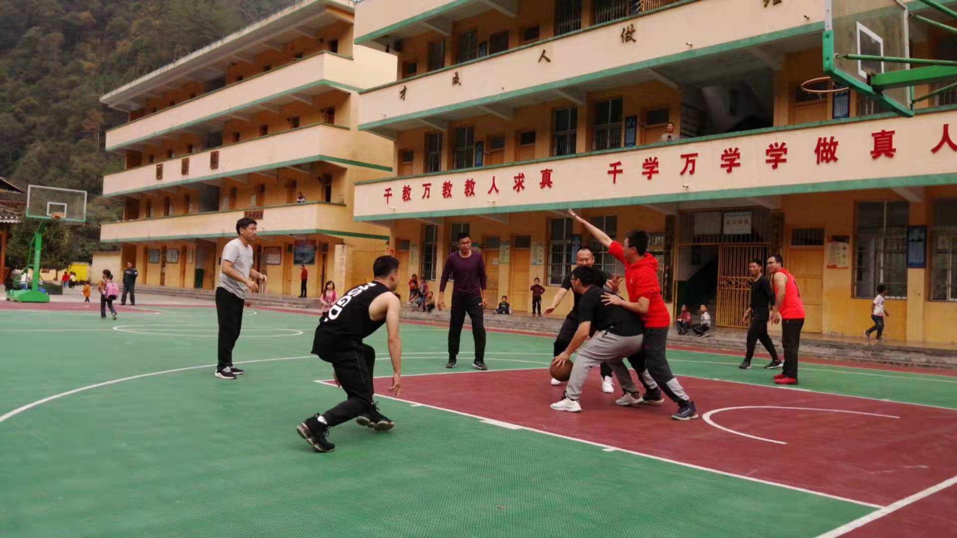 下午5点,一行来到巫西小学,对住校留守儿童进行慰问并指导课程学习,并组织体工部教师团队与当地驻村干部和村民进行混编篮球友谊比赛,受到当地群众的高度好评。