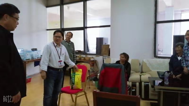 9月30日上午,李国和带领教职工一起看望了花溪校区和鹿冲关校区两边共计10位场馆工人,向他们送去大米、食用油和节日的诚挚祝福。