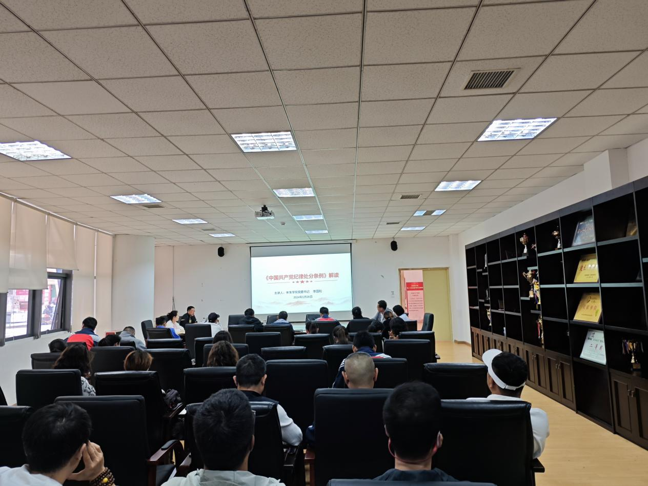 李国和围绕主题,从《中国共产党纪律处分条例》的历史沿革和修订背景,《条例》主要内容和核心要义,切实推动学习贯彻《条例》走深走实等三个方面,解读阐述了认真学习《条例》的重大意义,引导全院党员干部把遵规守纪刻印在心、内化为日用而不觉的言行准则。同时,结合nba直播 实际工作,特别是针对当前体育教育工作领域存在的廉洁问题进行了深入剖析。